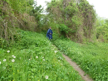 Nous passons au dessus de l’Yerres, dommage pour les photos, il fait trop sombre. Nous prenons la direction de Coubert et amorçons une montée dans la ruelle de la Burelle. Voilà déjà les premières gouttes. Denis qui n’avait pas envie d’enfiler son poncho, est en train de capituler. Nous continuons pour arriver au pont de l'ancienne voie ferrée.