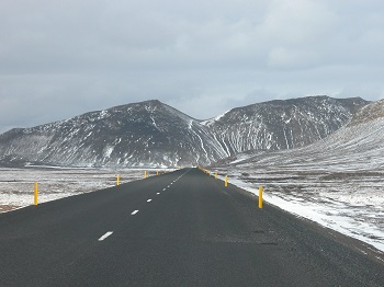 En poursuivant notre route, nous passons tout près du volcan Krafla pris dans la neige et du volcan Hverfjall