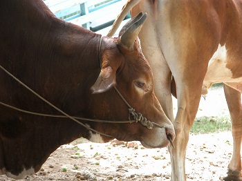 Un habitant nous montre la manière de casser la noix de coco. De gros bœufs tournent encore une roue pour écraser les aliments.