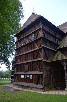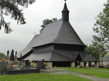 A 10 heures, nous sommes à Hronsek, un petit village possédant un charmant temple protestant tout en bois.qui a été inclus en 2008, sur la Liste du patrimoine UNESCO Word. L'église date de 1726 et Il y a 1.100 chaises dans cette église ainsi qu'un orgue qui a été installé en 1764. Des tilleuls cachent en partie l'église et il n'y a pas de place pour se garer, c'est dommage. Denis a bien du mal à effectuer un demi-tour.